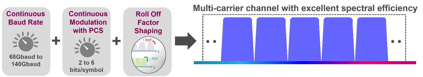 Below we discuss how Ribbon targets maximum capacity using Acacia’s CIM 8 programmable 140Gbaud transceiver. Its advanced Jannu DSP technology leverages multiple capabilities to cost-effectively maximize subsea fiber capacity, for any distance and fiber condition.