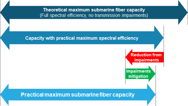 Figure 1 illustrates the framework for maximizing subsea fiber transmission capacity. This is based on two components: maximizing spectral efficiency and mitigating the effects of transmission impairments.