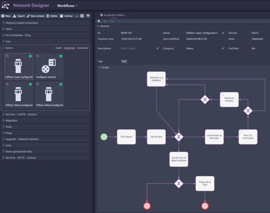 Workflows automate a sequence of network tasks and processes, triggered manually or on a schedule. By automating Network Operations Center (NOC) activities such as troubleshooting, maintenance, and large‑scale operations, they help reduce human error and lower operational costs for network operators.